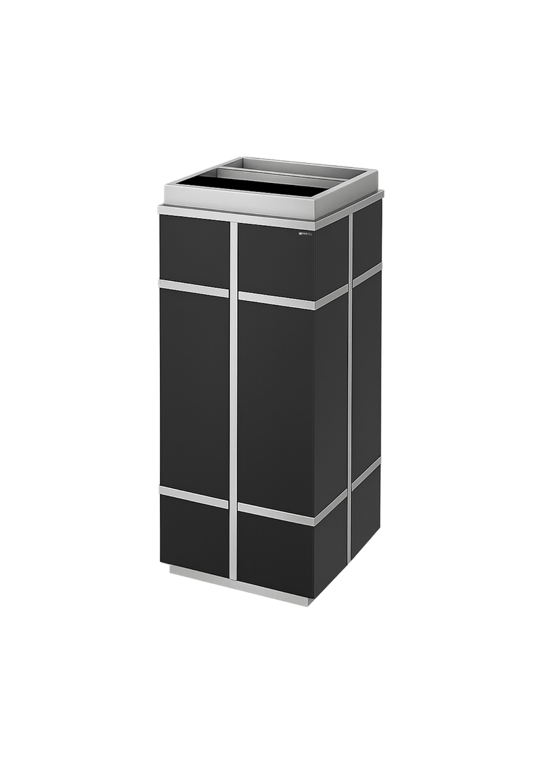 A sleek and durable waste bin designed for modern spaces, crafted with a combination of stainless steel and galvanized steel. Its premium matte black finish ensures it fits into upscale environments like offices, hotels, and public areas. Featuring a generous 37L capacity and a space-saving rectangular form, this unit includes a galvanized steel inner bin for easy maintenance and corrosion resistance.