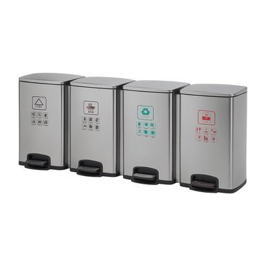 Efficiently manage waste with the PD-D04D 4-Compartment Stainless Steel Pedal Bin (80 L). Designed for high-traffic spaces like shopping malls, airports, schools and offices, this unit features four compartments (4 × 20 L) with pedal-operated openings for hygienic, hands-free use. Built from durable stainless steel, it resists rust and daily wear while offering easy cleaning via removable inner bins. The sleek design combined with colour/logo customisation options makes it perfect for visible locations. Promote waste separation effortlessly with this robust, professional sorting station.
