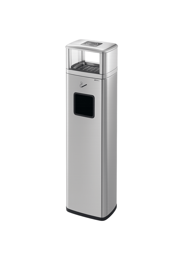 The MaxBin 189188 is a sleek and durable stainless-steel bin designed for modern indoor and outdoor environments. With a convenient ashtray top and an inner plastic bin for easy cleaning, this unit is ideal for public spaces such as shopping centers, offices, hotel entrances, or outdoor walkways. Its tall, slim profile allows for discreet placement without sacrificing capacity.