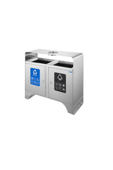 The 189225 is a stylish dual-compartment bin made from high-grade stainless steel, ideal for indoor and outdoor waste separation. With designated labels for recyclable and general waste, it offers a clean, organized solution for public environments like airports, malls, offices, and transport hubs. The sleek silver finish ensures a professional look, while the durable construction withstands daily use in high-traffic areas.