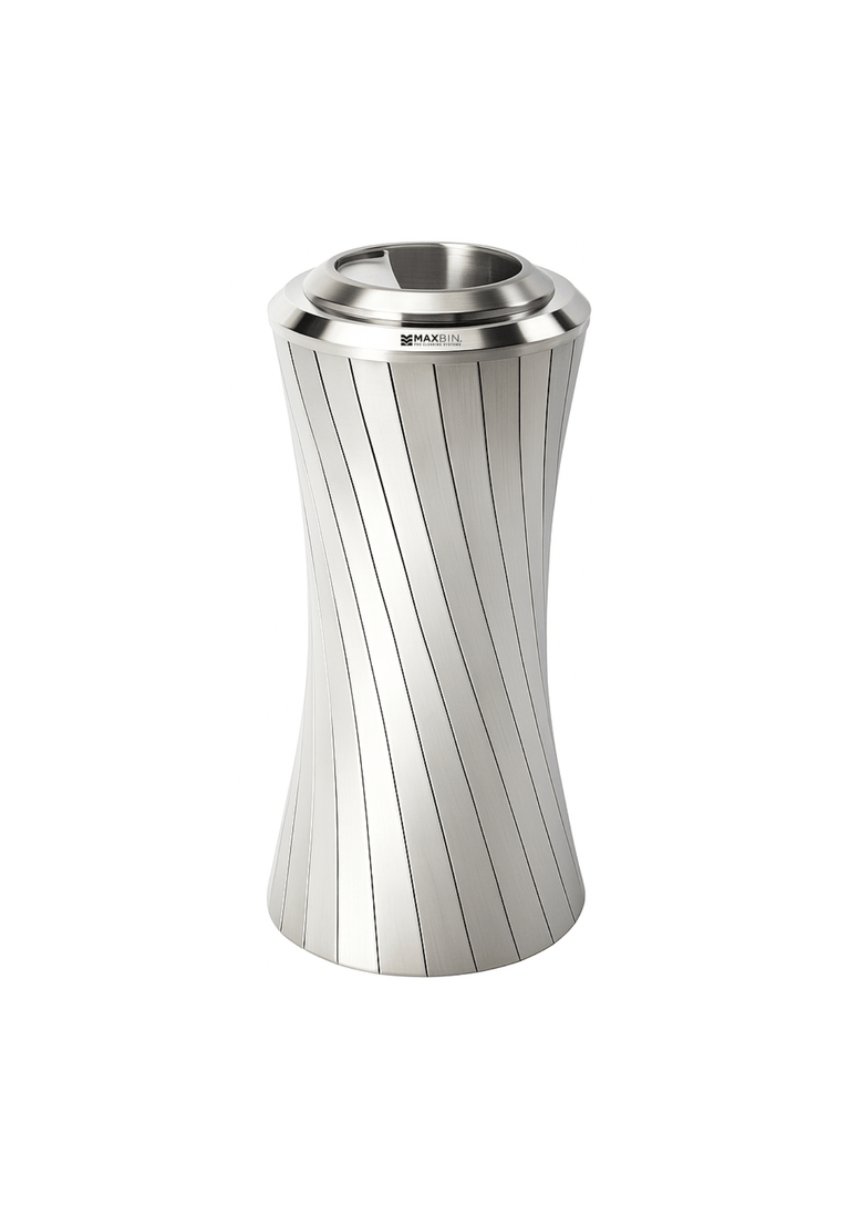 The MaxBin 189166 is a sleek and modern stainless steel waste bin designed to elevate the aesthetic of any space. Featuring a gracefully curved silhouette and durable construction, this bin is ideal for upscale commercial environments such as hotels, lobbies, office buildings, and showrooms. Its polished silver finish and minimalist design make it both functional and stylish.
