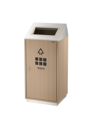 The 189289 is a stylish, wood-colored waste bin designed to blend seamlessly into modern and natural-themed spaces. Featuring a durable stainless steel and plastic inner bin, it ensures long-lasting performance with minimal maintenance. Its angled top and front-facing drop slot enhance ease of use, making it ideal for both indoor commercial and public environments.
