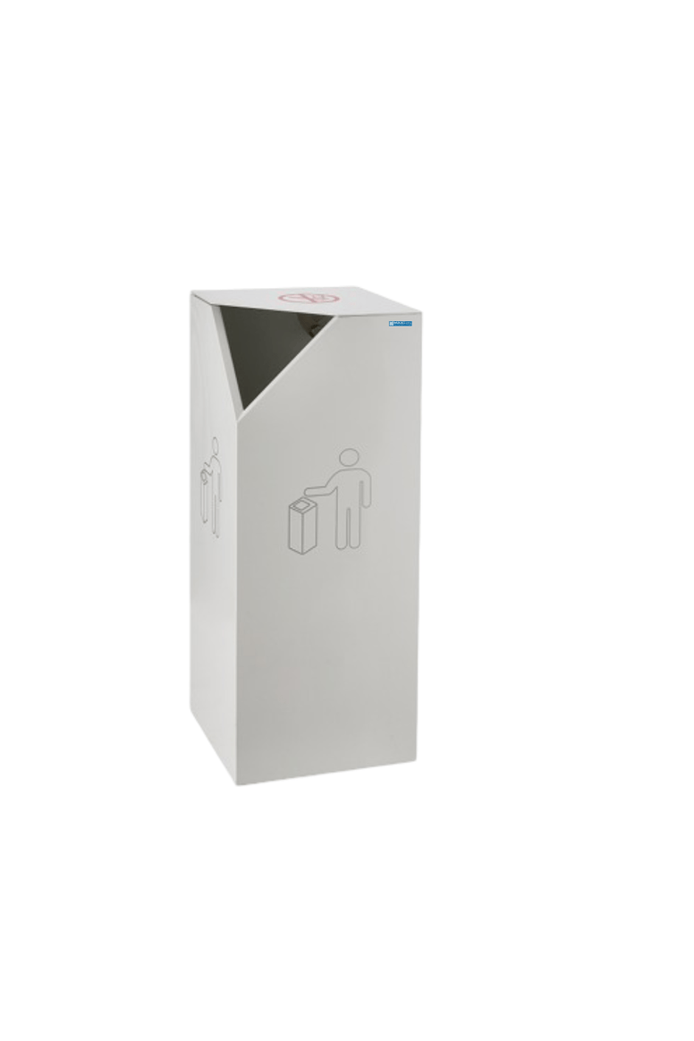 The 189255 is a modern and minimalistic waste bin featuring a unique angled top opening for quick disposal access. Its all-white steel construction with a galvanized inner liner makes it ideal for high-end commercial interiors, including offices, galleries, malls, and hospitality venues. The clean aesthetic and functional design make it a smart, space-conscious waste solution.