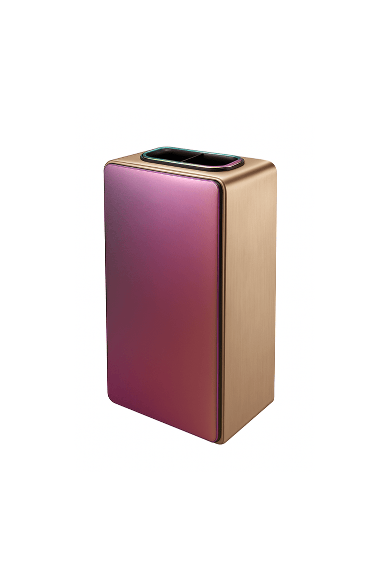The 189103 is a stylish, premium-grade waste bin crafted from durable stainless steel and designed with a vibrant gradient finish that transitions through stunning rose gold, purple, and green hues. Its modern form and sleek lines make it ideal for upscale restrooms, offices, and hospitality venues. The built-in plastic inner bin adds functionality for easy cleaning and waste management.
