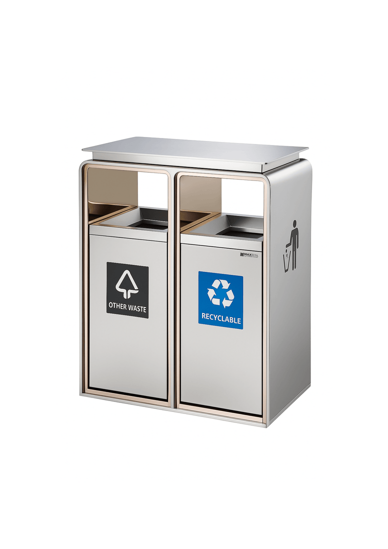 Stainless Steel 60 L Outdoor Recycling Bin (MAX-HK321) – Powder-Coated, Durable, Eco-Friendly