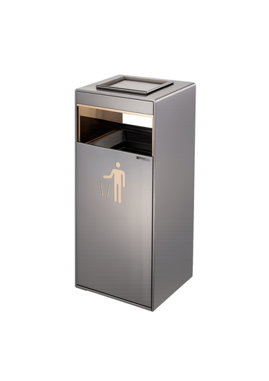 The 189121 is a premium open-top waste bin designed for modern commercial environments. With a sleek stainless-steel exterior accented in black gold and rose gold, it adds a sophisticated touch to any setting. Its compact design and high-end finish make it perfect for lobbies, hotels, offices, and upscale venues.